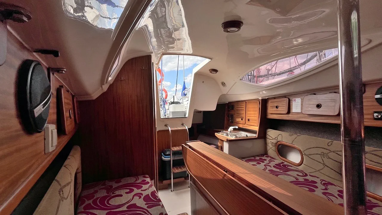 Zamieszczone zdjęcia obrazują faktyczne rozplanowanie i sposób zabudowy jachtu nie są jednak regularnie aktualizowane. Proszę pamiętać, że stan jachtu wynika z jego rocznika budowy i często nie jest zgodny ze stanem jaki pokazano na zdjęciach.