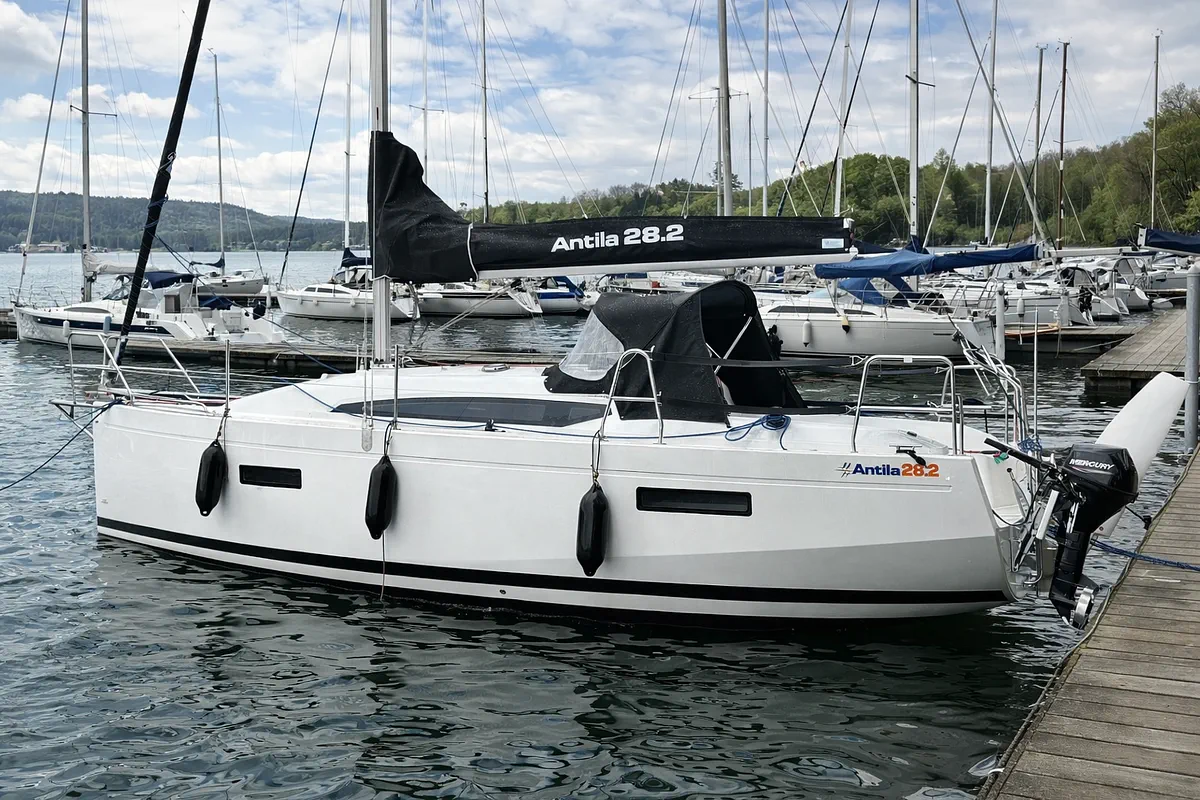 Prezentujemy fabrycznie nową Antilę 28.2, odebraną w tym roku bezpośrednio ze stoczni Antila Yachts. To nowy jacht w podwyższonej konfiguracji wyposażenia, przygotowany z myślą o wymagających załogach. Idealny dla 4–6 osób, które oczekują komfortu, bezpieczeństwa i nowoczesnych rozwiązań.