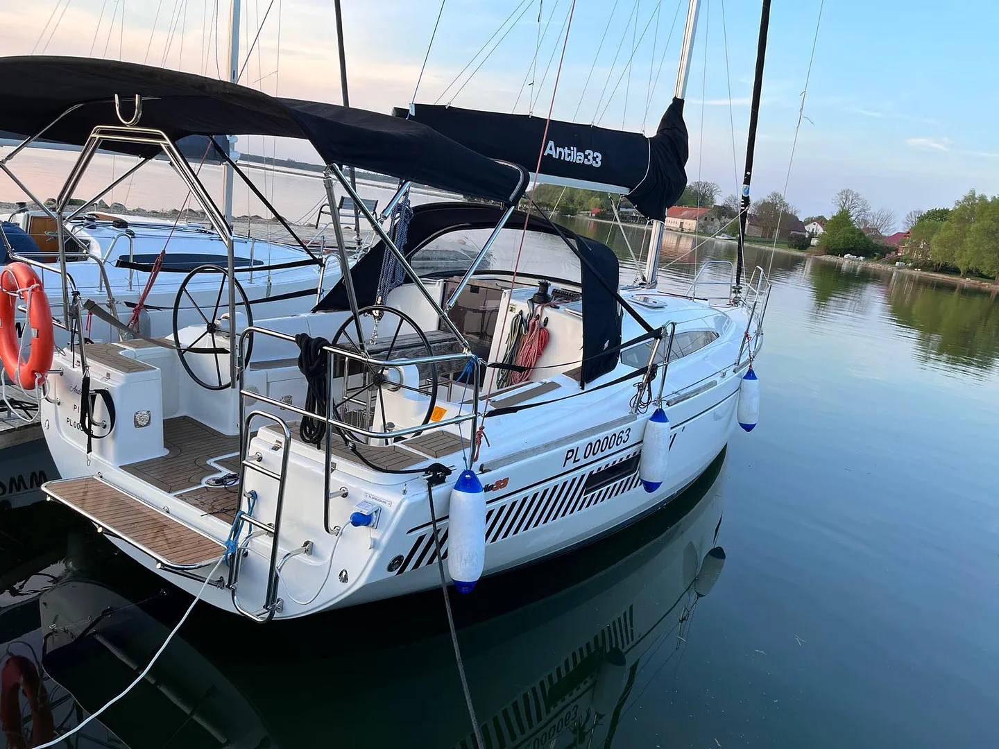 sztywny sztag, roll fok, lazy jack, patent/bramka masztu, prysznic, radio, TV, ogrzewanie, lodówka, ciepła woda, woda zaburtowa, instalacja wody pitnej, instalacja elektryczna, tent, relingi, kuchenka gazowa, zlewozmywak, napełniona butla turystyczna z gazem, pełne wyposażenie kambuza, środki ratunkowe i gaśnica, stolik kokpitowy, gniazdko ładowania telefonu, Ubezpieczenie OC, Ubezpieczenie JachtCasco, Ubezpieczenie NW, Ubezpieczenie od kradzieży silnika, kotwica, cumy, pagaje, bosak, odbijacze, wiadro, drabinka rufowa,, szprycbuda + bimini, ster strumieniowy
