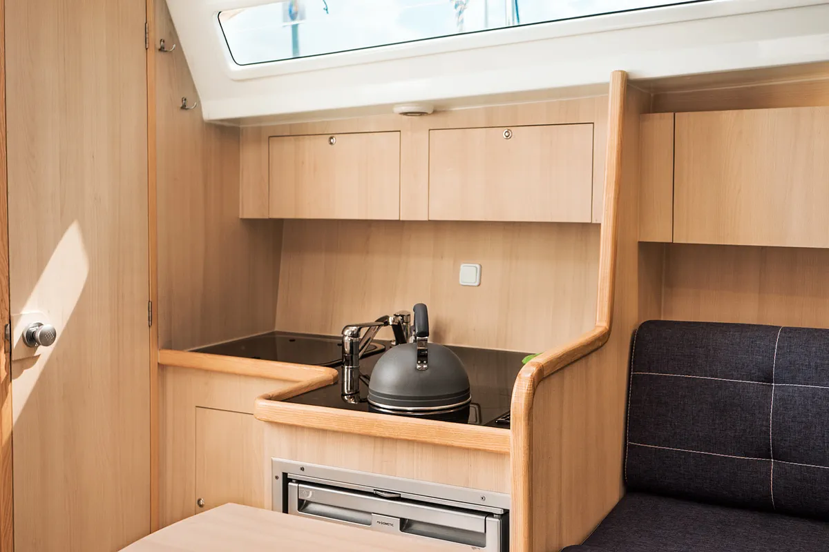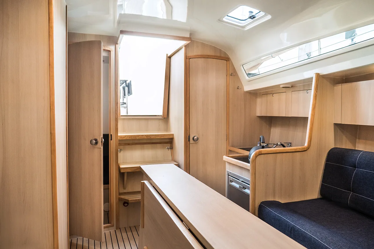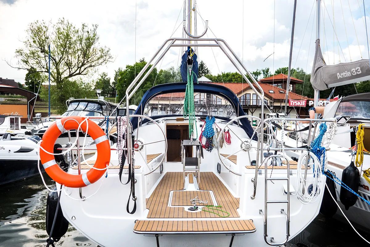 Komfortowe wyposażenie z kabestanem elektrycznym , fokiem samohalsującym , BI-MINI i wszelkimi wygodami jak ciepła woda, lodówka, ogrzewanie , WC morskie elektryczne, TV umieszcza jacht Antila 33 w ścisłej czołówce jachtów żaglowych w naszej ofercie.