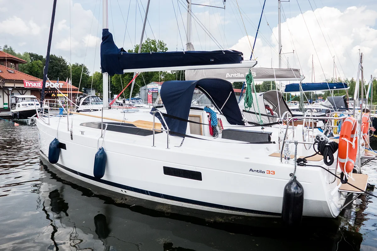 Piękna linia kadłuba ( przypominająca trochę serie morskich jachtów Elan z charakterystycznym załamaniem nadburcia ) w połączeniu z wygodnym kokpitem z 2 kołami sterowymi sprawia, że Antila 33 przebojem wkracza jako świetny wybór w segmencie największych jachtów żaglowych na mazurskie szlaki.