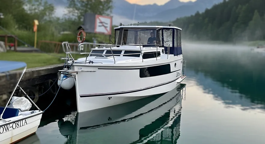 El Pablo to houseboat Calipso 750 w wersji Elegance z dwoma osobnymi zamykanymi kabinami. Nowoczesny i komfortowy jacht motorowy wyposażony we wszystko co niezbędne i przydatne w „biwakowaniu na wodzie”. Doskonałe warunki nautyczne i ekonomiczny silnik Yamahy 25 KM