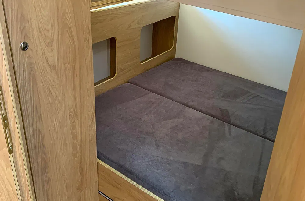 19. Rozdzielana przegroda pomiędzy dwoma kabinami rufowymi pozwala je połączyć, lub rozdzielić kiedy zachodzi taka potrzeba (świetne rozwiązania dla rodziców z dziećmi)
