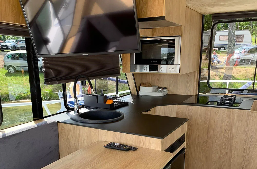 20. Zabudowa wnętrza w ciepłej barwie drewna (nawiązanie do klasycznych cruiserów) daje wnętrzu poczucie ciepła i komfortu. Nie ma tutaj laminatu i niskiej jakości materiałów,