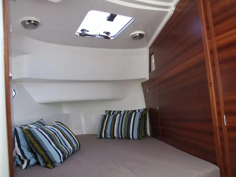 Dzięki zamkniętemu kokpitowi i burtom jacht idealnie nadaje się do pływania z małymi dziećmi. Dzięki tym udogodnieniom łatwo mieć pod kontrolą dzieci i zabezpieczyć je przed bezpośrednim kontaktem z wodą. Otwarty kokpit połączony z salonem i platformą kąpielową docenią też wędkarze. Bardzo dobrze też odnajdą się na tym jachcie osoby, które nie przepadają za bardzo dużymi jednostkami i jachtami które łatwo wchodzą w przechyły i kołysanie. Na dnie kadłuba oprócz listwy kilowej umieszczono 2 boczne stępki ,które chronią dno, poprawiają stateczność kursową i manewrowość oraz zmniejszają kołysania poprzeczne.