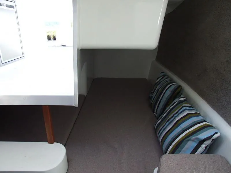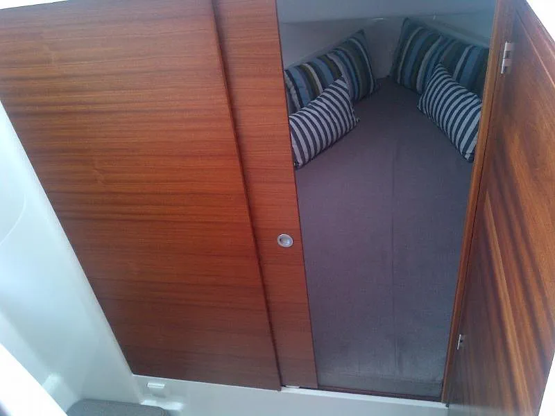 W części dziobowej znajduje się oddzielona kabina dla dwóch osób, następnie idąc w kierunku rufy mamy otwartą hundkoje dla dwóch osób. Kolejne dwie osoby mogą spac w mesie na rozkładanej kanapie. Poza miejscami sypialnymi w przestrzeni mieszkalnej jest zamykana, przestronna toaleta z umywalką, kanapa ze składanym stołem oraz kambuz ze zlewem, kuchenką i lodówką. W kokpicie jachtu znajdzie się kanapa w kształcie litery L, a na rufie znajduje się przestronna platforma kąpielowa. Pogłębiony pokład dziobowy zapewni bezpieczeństwo podczas odpoczynku lub w trakcie poruszania się po łodzi.