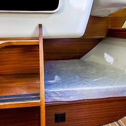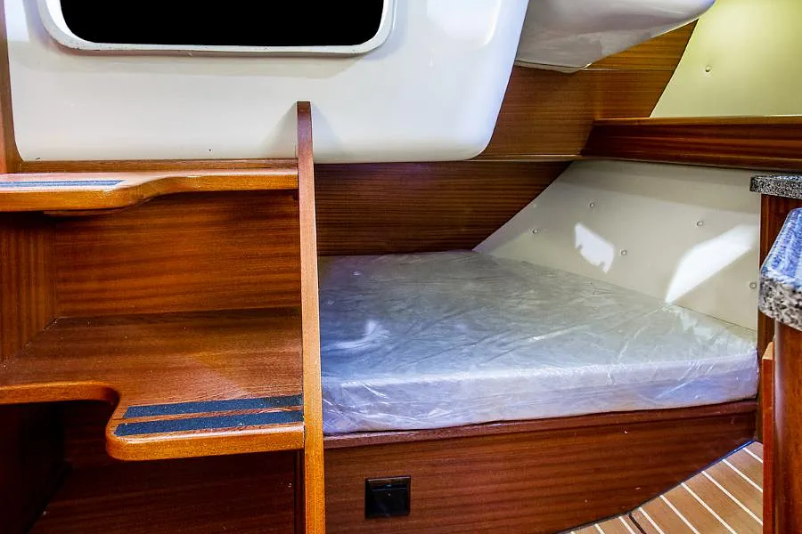 - Kabina dziobowa oddzielona grubą, przesuwną kurtyną, kambuz: zlew, kuchenka 2-palnikowa, butla z gazem (3kg), zastawa, sztućce, garnki, patelnia, czajnik, deska do krojenia, durszlak, środki ratunkowe, zestaw narzędziowy, siatka na relingi ( na życzenie), instalacja elektryczna i wodna, kompleksowe ubezpieczenie