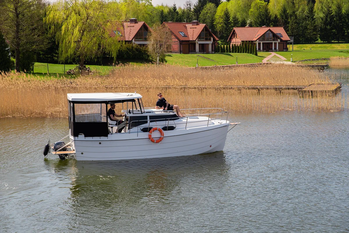 Tą łódką możesz dopłynąć w każdy zakątek Mazur, jest bardzo stabilna na wodzie, zwłaszcza w trudnych warunkach. Pokonasz każdy szlak mazurski, śpisz bądź w portach z gastronomią, bądź na wyspach i sam przygotowujesz posiłki!