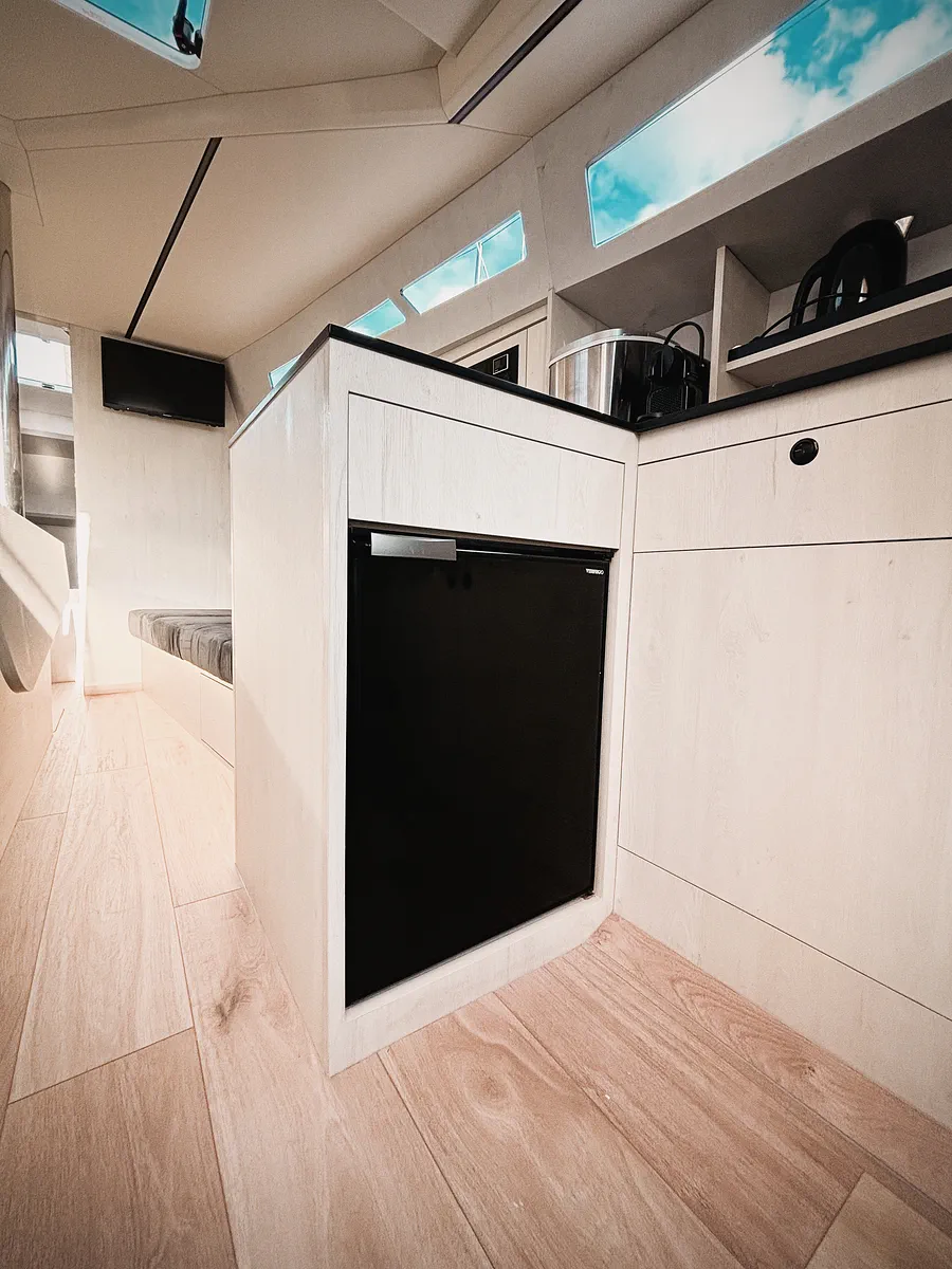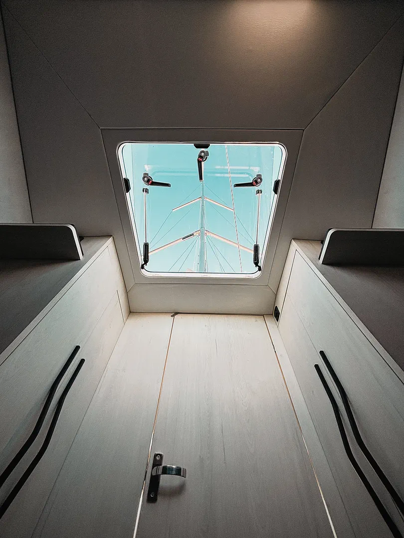Rozkładany trap kokpitu wraz z obszernym wnętrzem gwarantują maksymalną ilość miejsca na relaks na obu poziomach. Przeszklenia pokładu Legion 360 na wysokości messy zapewniają maksymalną ilość światła dziennego w środku, nawet w pochmurny dzień. Z zewnątrz okna wraz z eleganckimi liniami pokładu tworzą niepowtarzalny styl.