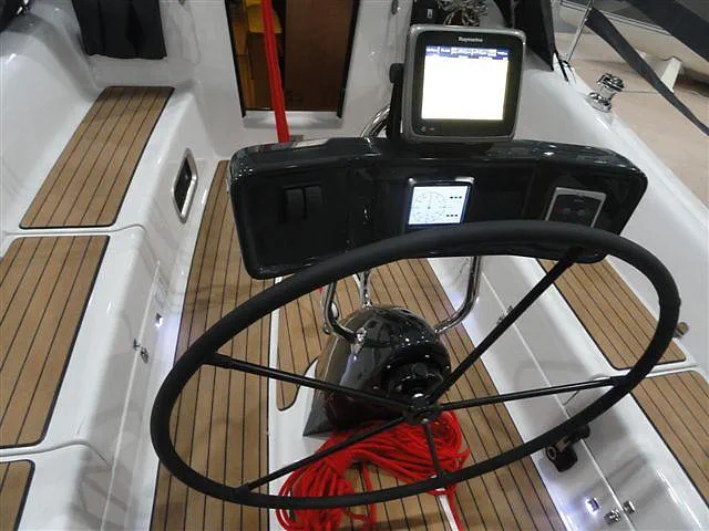 bramka do kładzenia masztu, lazy jack, roler foka, sztywny sztag, tent na bom, drabinka rufowa, stolik kokpitowy, kosz dziobowy i rufowy, relingi, miecz uchylny, kabina WC + WC chemiczne lub morskie, kambuz: kuchenka gazowa, komplet naczyń, sztućców, garnków oraz patelnia