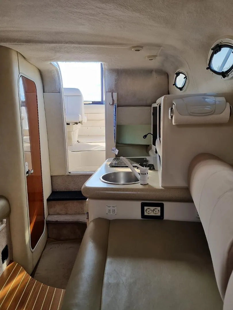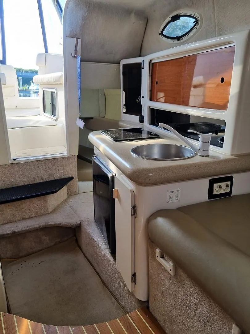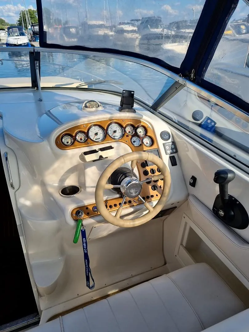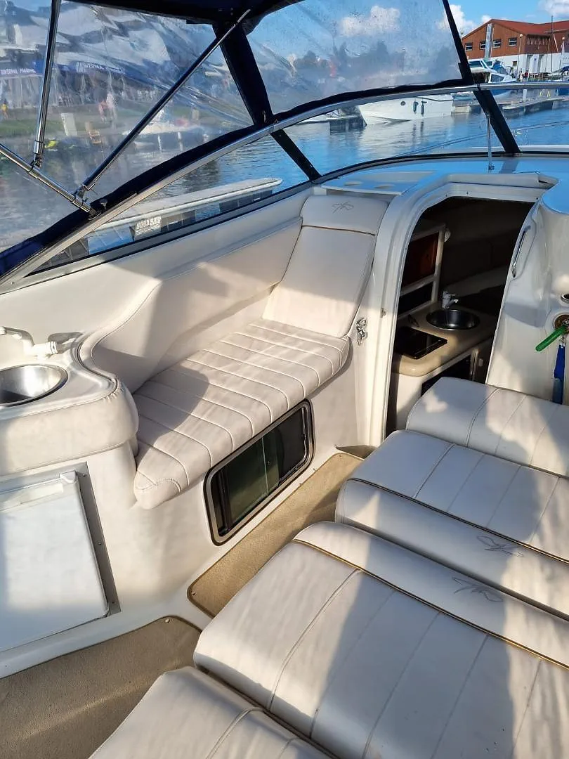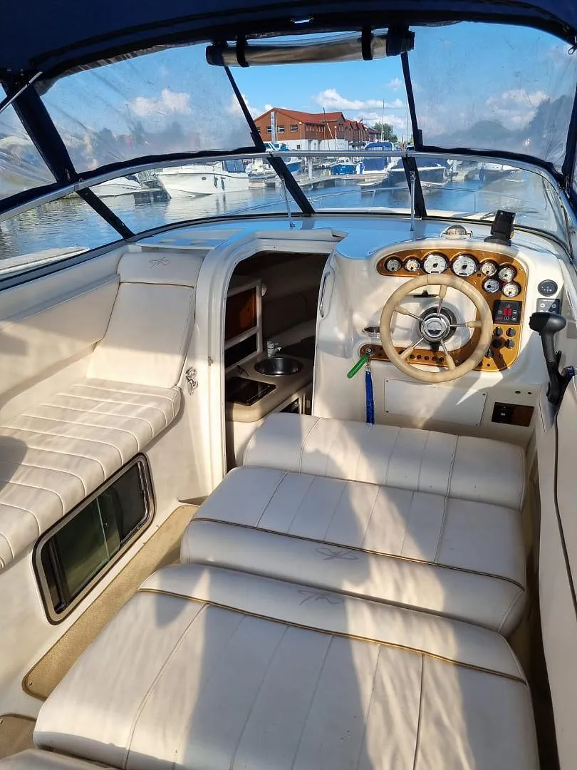 Łódź prowadzi się bardzo lekko i stabilnie. Idealna zarówno do dziennego pływania jak i kilkudniowego rejsu po pięknych Mazurach. Zapewnia niezapomniane wrażenia, nawet najbardziej wymagający koneserzy, odczują moc silnika Mercury o mocy 220 KM. Dodatkowym atutem jest jego ekonomiczność. Silnik diesla jest bardzo ekonomiczny. Dodatkowo manewrowanie w portach ułatwi dziobowy ster strumieniowy.