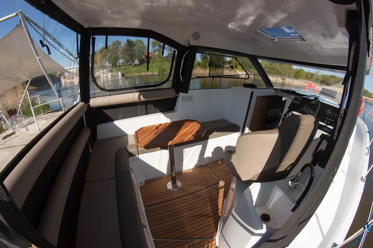 Sportowa sylwetka jachtu Nautic 900 poruszającego się na wodzie potrafi zachwycić każdego. Funkcjonalne zaprojektowane wnętrza, dużo przestrzeni zarówno na pokładzie górnym oraz na pokładzie dolnym, wygodne kajuty, duża łazienka oraz miejsce dla 6 osobowej załogi to największe zalety tej jednostki. Co w połączeniu z walorami nautycznymi oraz łatwością manewrowania powoduje że jest to idealny jacht do czarteru na Pętle Żuławską. Jednostka jest dobalastowana – cały kil został zalany żywicą z ołowiem. Jacht bardzo dobrze zachowuje się na falach , posiada na wyposażeniu radio VHF. Jacht motorowy Nautic 900 to świetny wybór do czarteru na Zalewie Wiślanym.