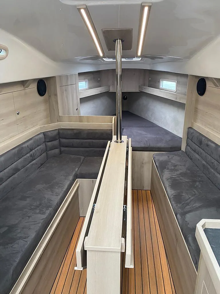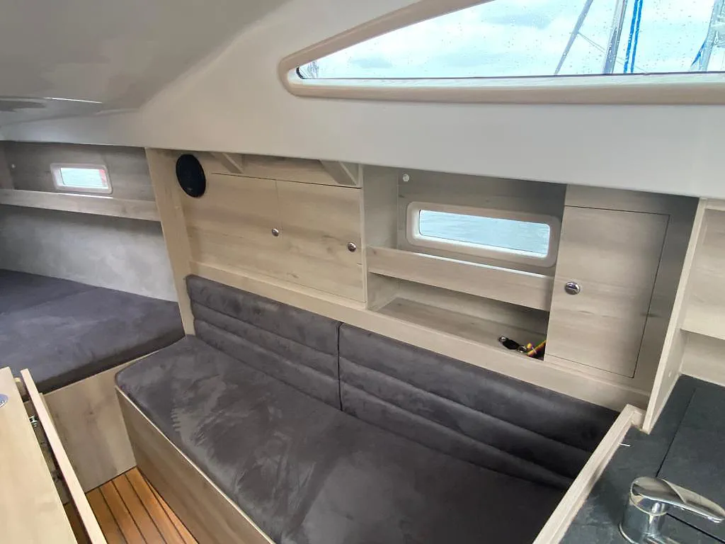 Jacht żaglowy Phobos 24,5 - Wersja Exclusive Line / 6 osób - to bardzo nowoczesna, komfortowa, szybka i bezpieczna jednostka. Właściwości nautyczne jachtu są jednymi z najlepszych w tej klasie jachtów. Jacht został wyprodukowany w 2021r i został skonfigurowany w wersji armatorskiej z zamykana kajutą rufowa, która gwarantuje intymność.
