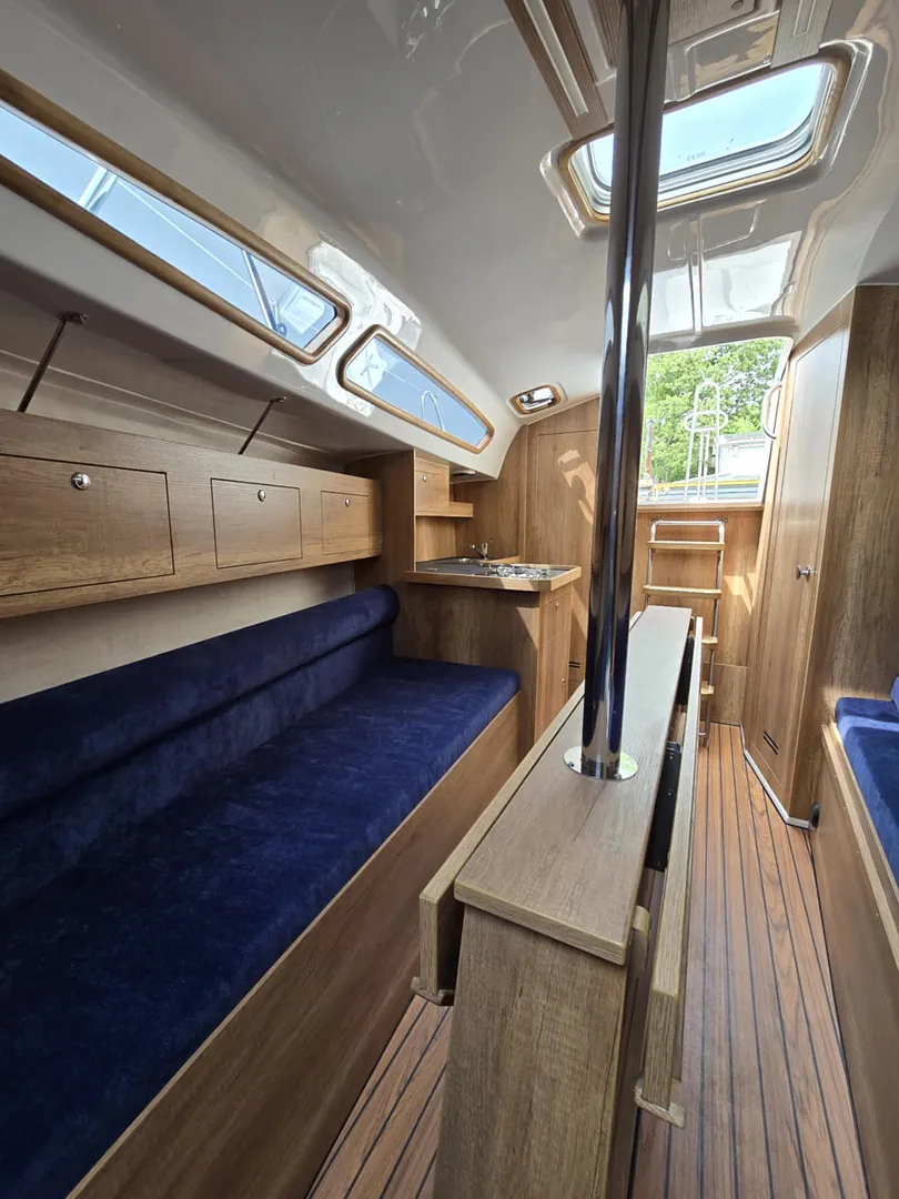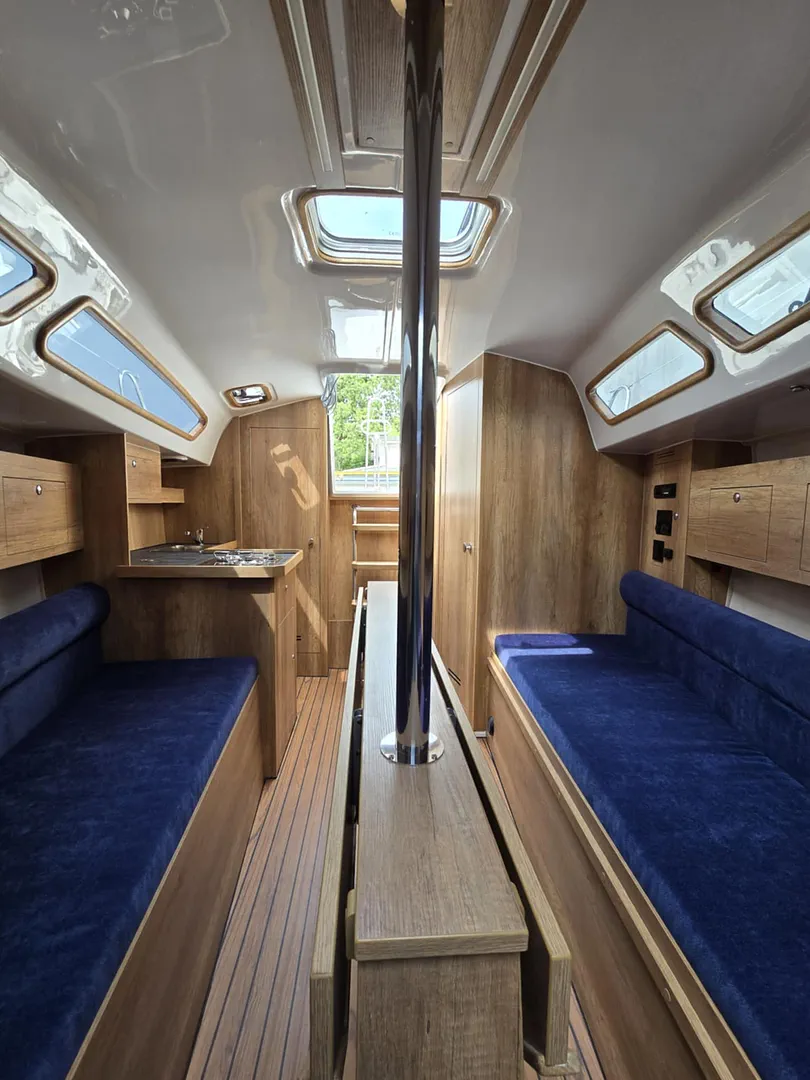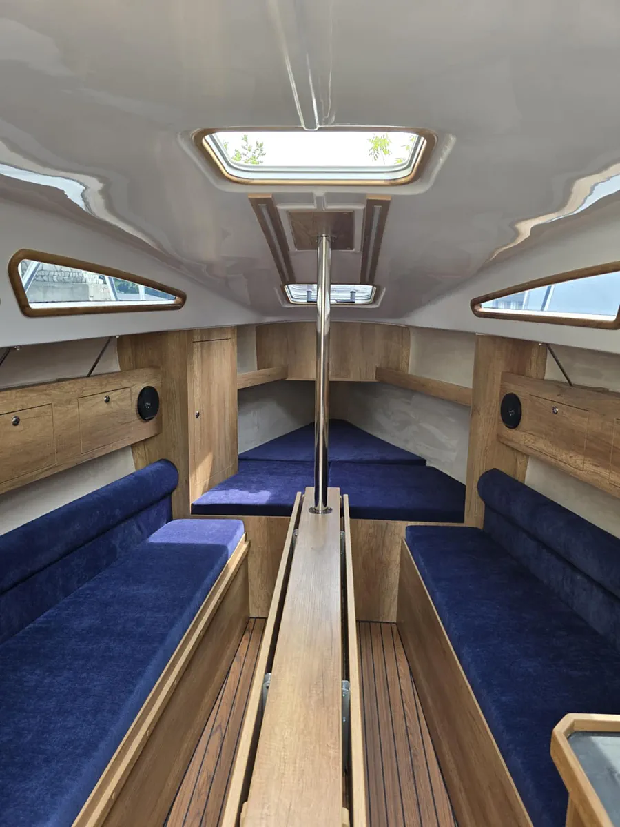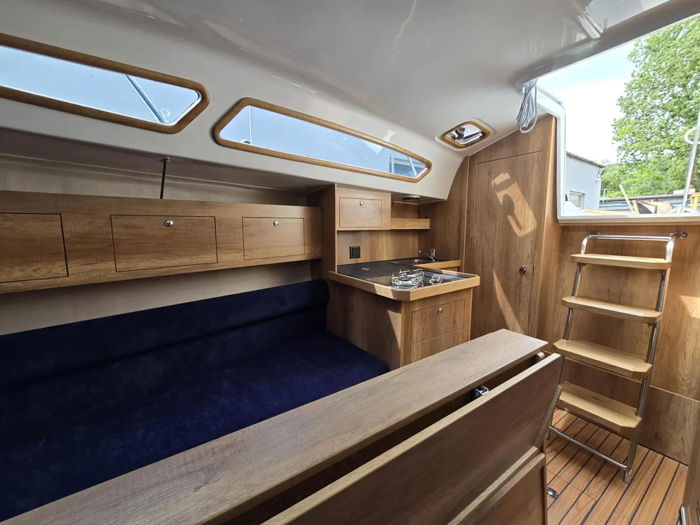 Phobos 25 Exclusive nawiązuje stylistycznie do nowoczesnych śródziemnomorskich jachtów. Długa nadbudówka z charakterystycznymi dużymi oknami pozwala zamontować nawet sześć otwieranych okien i luków, co zapewnia ponadprzecietną wentylację i doświetlenie wnętrza. Jacht wyróżnia się dużym kokpitem z którego jest znakomita widoczność w stronę dziobu. Aż cztery osobne schowki kokpitowe ułatwiają przechowywani niezbędnych dla żeglarzy przedmiotów. Zaprojektowany przez znanego regatowca Wojtka Spisaka „szybki” kadłub Phobosa 25 jest szeroki i stosunkowo płaski. Z jednej strony gwarantuje znakomitą stateczność, a z drugiej sporą pojemność wnętrza. Prezentowane na zdjęciach modele mogą różnic się zabudową w czarterze gdyż ciągle rozbudowujemy flotę, wprowadzamy nowe jednostki Jachty, stylizujemy w nowoczesny sposób tak aby zapewnić Wam wyższy komfort i zaprezentować jednostki w coraz to nowszych odsłonach. Dane techniczne Rok budowy: 2025 Długość: 7,49 m Szerokość: 2,86 m Zanurzenie min/max: 0,34/1,44 m Liczba koi: 6+1/ 1 kab rufowa Wysokość w kabinie: 1,80 m Powierzchnia żagli: 30 m² Silnik: 5 lub 6 KM Wyposażenie Podstawowe wyposażenie nautyczne: grot na pełzaczach, rolfok na sztywnym sztagu, lazy jack, pokrowiec bomowy, obciągacz bomu, tent na bom, relingi, fały sprowadzone do kokpitu, kieszenie na liny, kabestany samoknagujące, kosz dziobowy z kaczym dziobem, miecz uchylny, drabinka rufowa, sztormreling, ster na pawęży, brama do opuszczania masztu, stolik w kokpicie, środki ratunkowe, silnik zaburtowy 6 KM Kambuz i mesa: zamykana kabina rufowa, ogrzewanie, kuchenka gazowa, butla z gazem, lodówka, instalacja wody pitnej, zlew, zastawa stołowa, zestaw naczyń kuchennych (szklanki, sztućce, garnki, patelnia, durszlak, tarka, czajnik, deska do krojenia) , WC chemiczne Zasilanie i multimedia: Instalacja audio: radio CD, mp3, instalacja elektryczna 220V, gniazdo 12V, prostownik, przedłużacz, akumulator , ładowanie akumulatora Wyposażenie ratunkowe: kapoki ratunkowe dla: 7 osób, koło ratunkowe, gaśnica, pagaje, bosak, odbijacze, kanister na paliwo, kanister na wodę, kotwica z liną, dwie cumy, wiadro, miednica, szczotka, zmiotka, korba do kabestanów, skrzynka narzędziowa, środki czystości, W cenie: Ubezpiecznie (OC AC NNW, rzeczy osobiste), serwis na szlaku, paliwo, gaz, naładowany akumulator Dodatkowe opłaty: sprzątanie jachtu — 200 PLN opróżnienie toalety - 200 PLN parking w porcie 20 zł/doba pies na jachcie — 150 PLN
