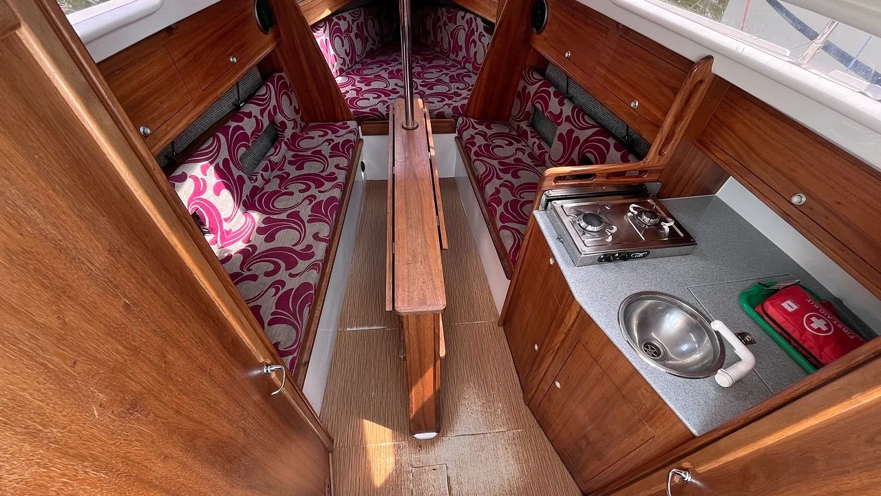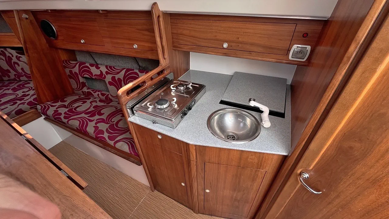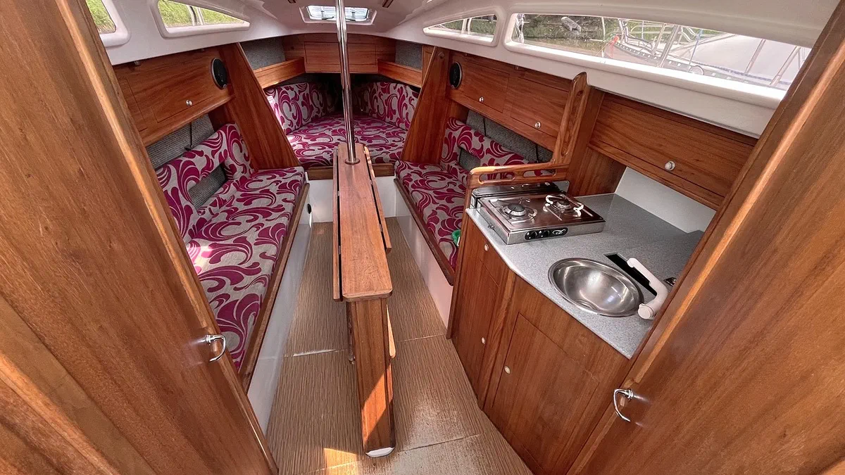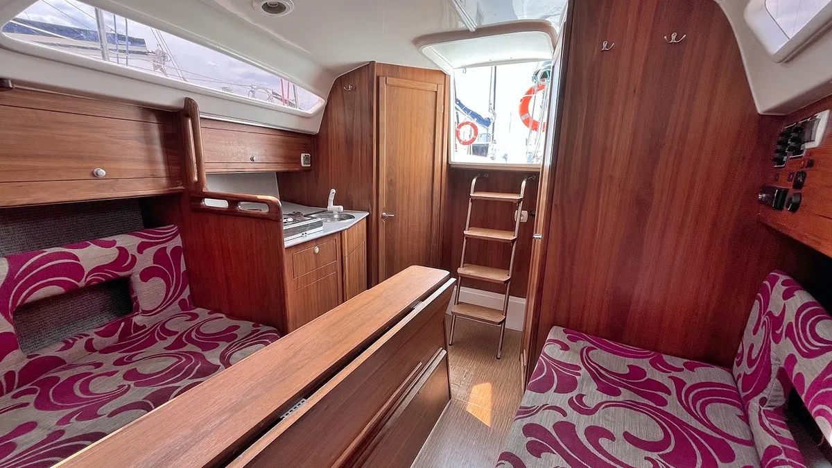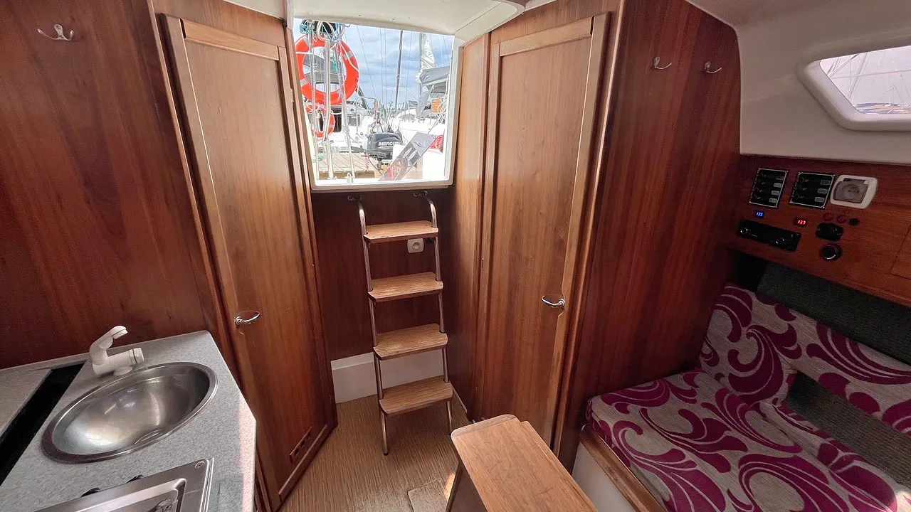 Zamieszczone zdjęcia obrazują faktyczne rozplanowanie i sposób zabudowy jachtu nie są jednak regularnie aktualizowane. Proszę pamiętać, że stan jachtu wynika z jego rocznika budowy i często nie jest zgodny ze stanem jaki pokazano na zdjęciach.