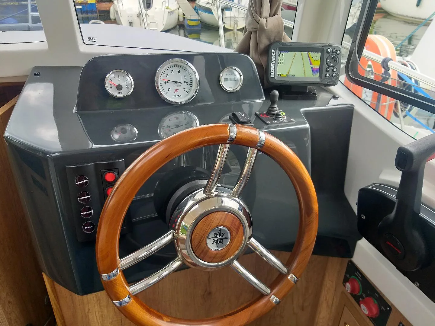 - sprzęt jachtowy (odbijacze, bosak, kotwica, wiosła, cumy),