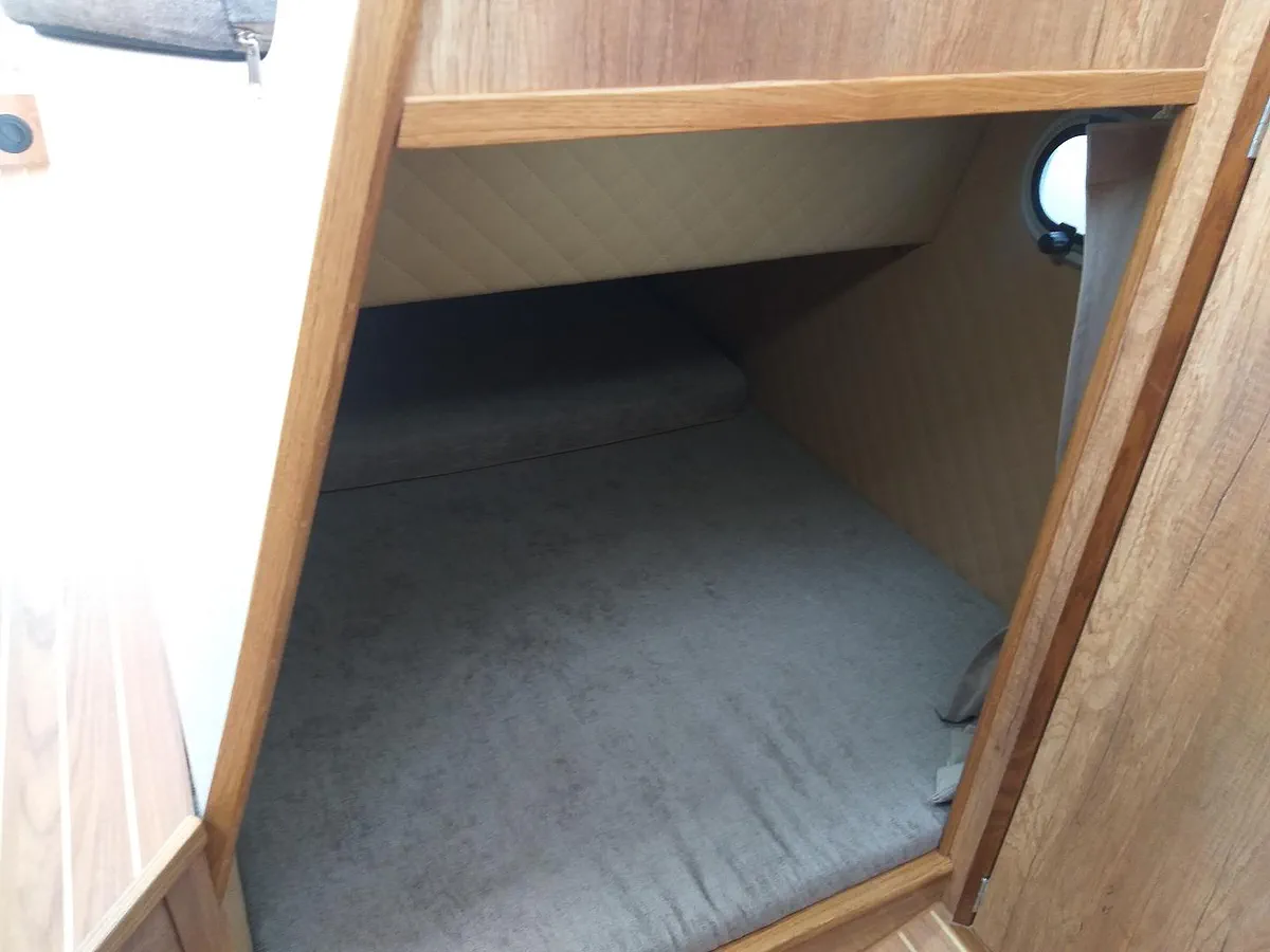 Możliwość wypoczynku na całych Mazurach wraz z noclegiem, wyposażoną kuchnią i WC z prysznicem na jachcie, nawet do 6 osób. Łatwe i bezpieczne wchodzenie i wychodzenie z jachtu zarówno dla dzieci jak i dorosłych gwarantuje bardzo obszerna platforma rufowa z uchwytami. Jest to ciekawe i wygodne rozwiązanie dla wędkarzy i przy kąpielach w jeziorze.