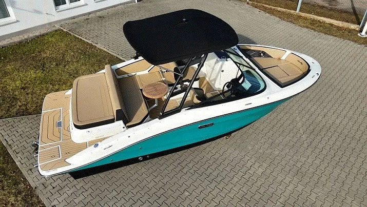 Łódź Sea Ray 210 miękko i wygodnie sunie po falach. Dobrze wyprofilowany kadłub w kształcie litery V sprawia, że tę motorówkę prowadzi się lekko, pewnie i stabilnie. Twoi pasażerowie na pokładzie mogą się w pełni zrelaksować podczas rejsu. Dodatkowo jest to najnowsza jednostka w naszej ofercie.
