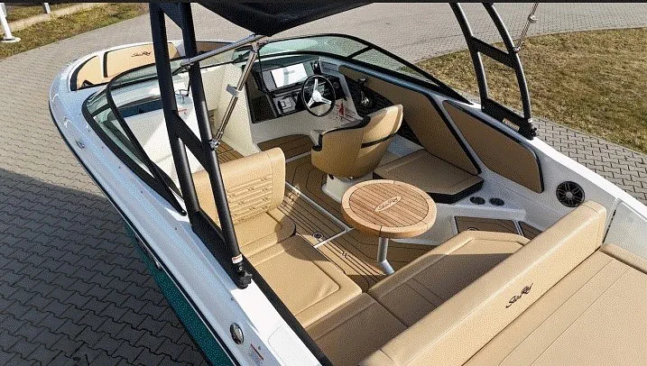 Krótki rejs czy kilkudniowa wyprawa na Mazurach? Jacht motorowy Sea Ray to idealny towarzysz Twojej mazurskiej przygody. Doskonały wybór, jeśli kochasz sporty wodne i dalekie rejsy w nieznane. Ta otwarto-pokładowa sportowa łódź motorowa pomieści nawet 10-osobową załogę głodną przygody i świetnie się nadaje do pływania na nartach wodnych, wakeboardzie czy kole. Specjalny, wydłużony trap ułatwia zakładanie nart czy też deski wakeboardowej. Drabinka rufowa pomaga w bezpiecznym zejściu do wody i wejściu na koło.