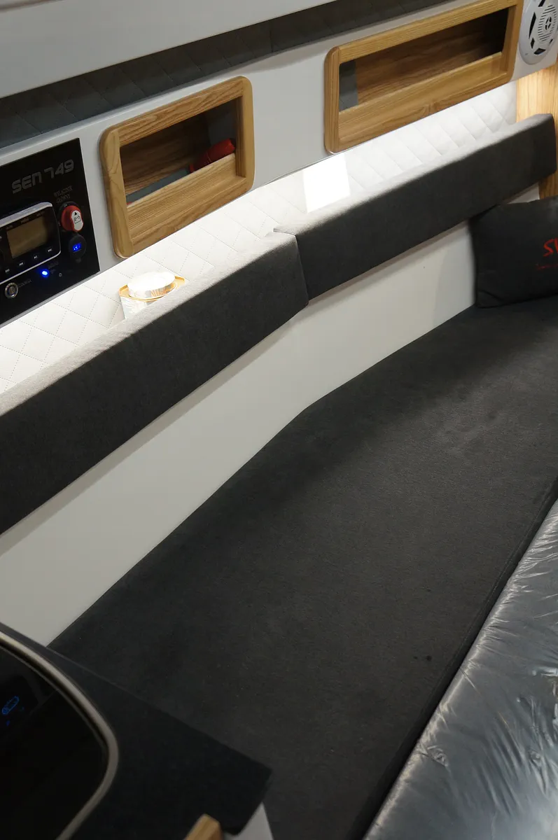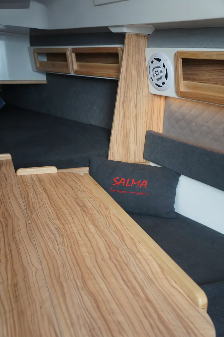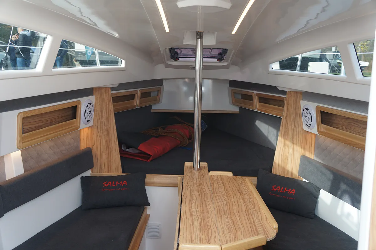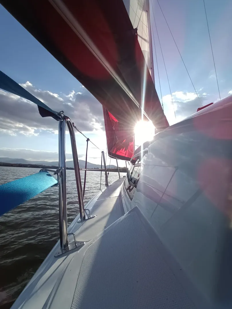 Tak wyposażone jak ten powstały tylko dwa – a to jeden z nich. Gdy podnosisz żagiel, czujesz różnicę od razu. Więcej płótna; wyższy maszt (9,5 m). Żaden inny nie pnie się tak w niebo, żaden nie łapie wiatru z taką gracją. A kiedy wiatr przyciśnie? Szybkie refy. Nie musisz stawać, cumować, tracić chwili. Skracasz żagiel w locie, płynnie, jakbyście tańczyli. On wie, czego chcesz, zanim jeszcze ruszysz dłoń.