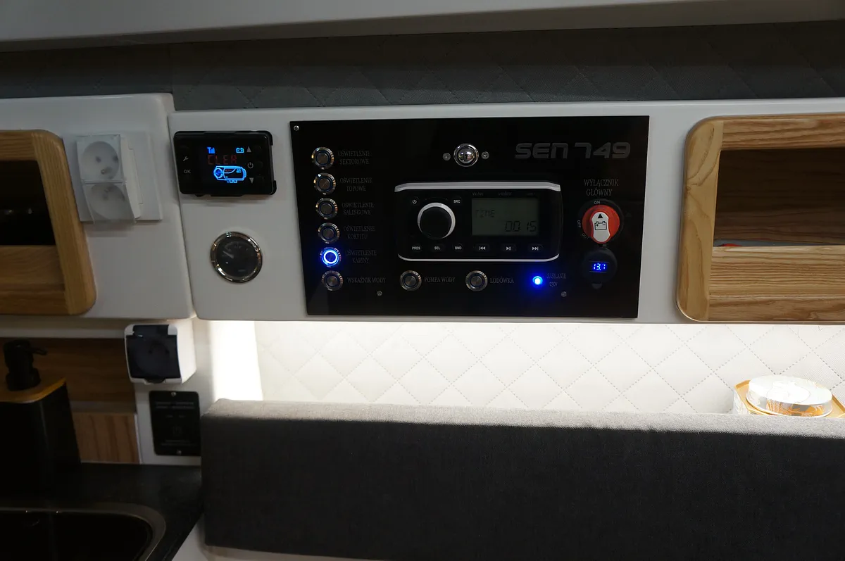 I nie potrzebujesz mariny - panele (500 Wp) – dają ci wolność. Przetwornica 1500 W? Możesz suszyć włosy na środku jeziora. Możesz wszystko.
