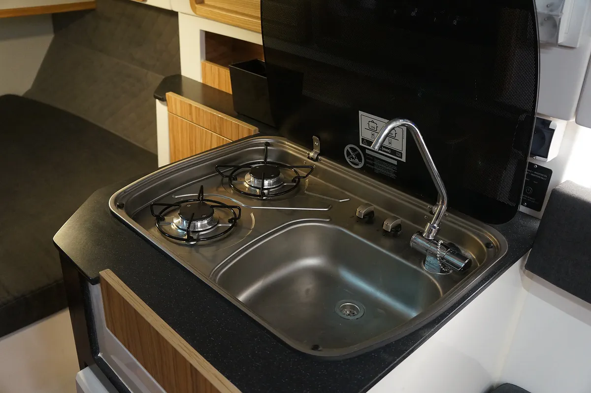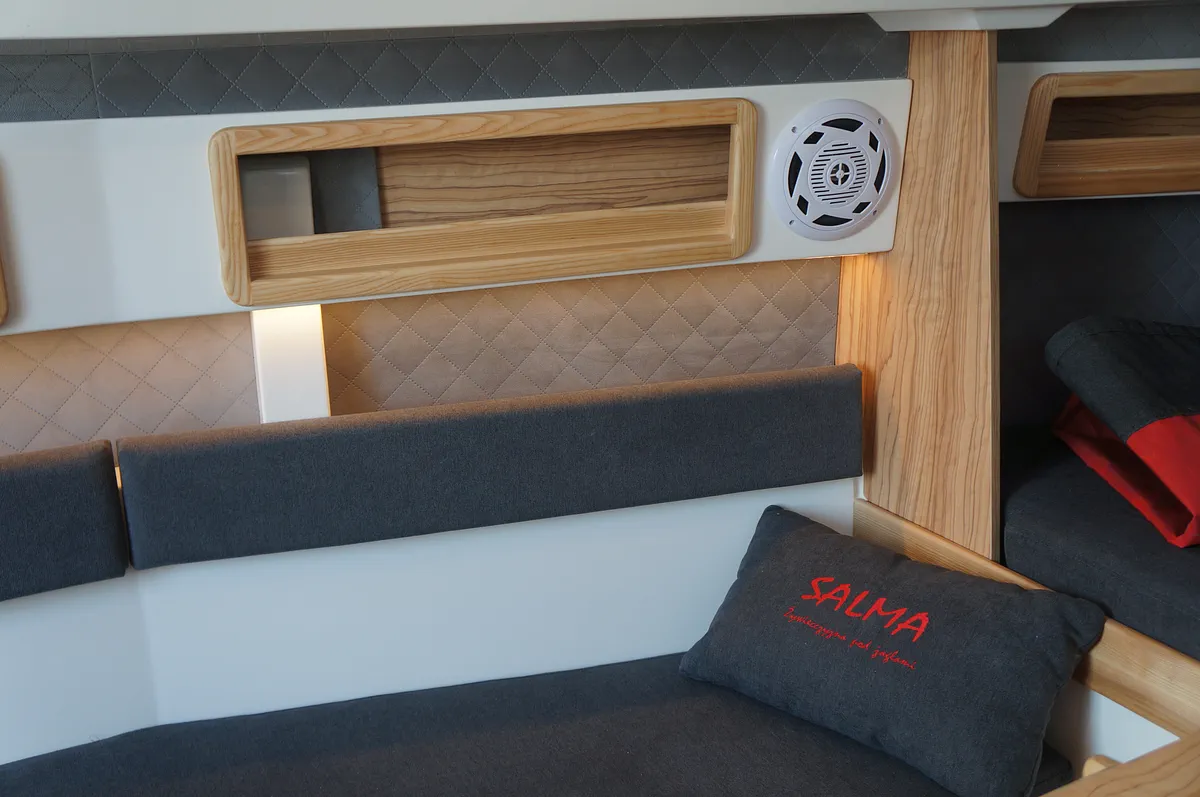 W środku ogrzewanie – ciepło, które przytula Cię o świcie. 4 podwójne koje - a tylko 6 osób. Instalacja wodna i gazowa, łazienka abyś poczuł się jak w domu. Lodówka szufladowa, która nie wyrzuci prowiantu przy przechyle.