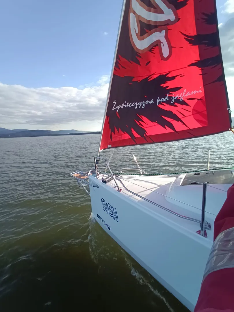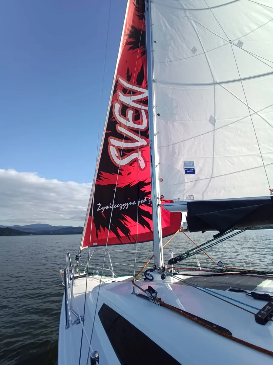 Gdy podnosisz żagiel, czujesz różnicę od razu. Więcej płótna; wyższy maszt (9,5 m). Żaden inny nie pnie się tak w niebo, żaden nie łapie wiatru z taką gracją. A kiedy wiatr przyciśnie? Szybkie refy. Nie musisz stawać, cumować, tracić chwili. Skracasz żagiel w locie, płynnie, jakbyście tańczyli. On wie, czego chcesz, zanim jeszcze ruszysz dłoń.