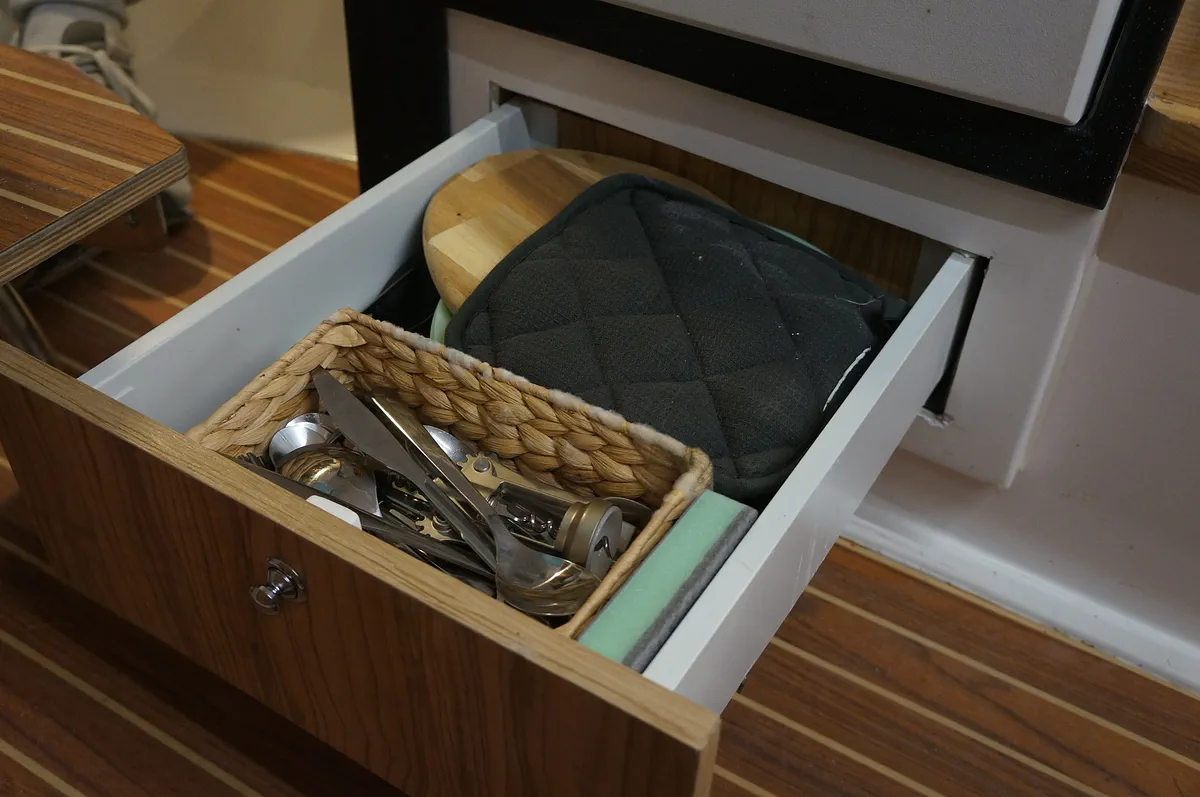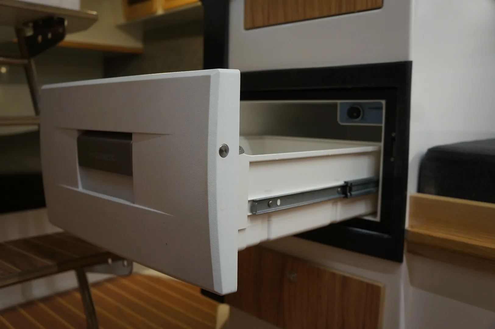 W środku ogrzewanie – ciepło, które przytula Cię o świcie. 4 podwójne koje - a tylko 6 osób. Instalacja wodna i gazowa, łazienka abyś poczuł się jak w domu. Lodówka szufladowa, która nie wyrzuci prowiantu przy przechyle.
