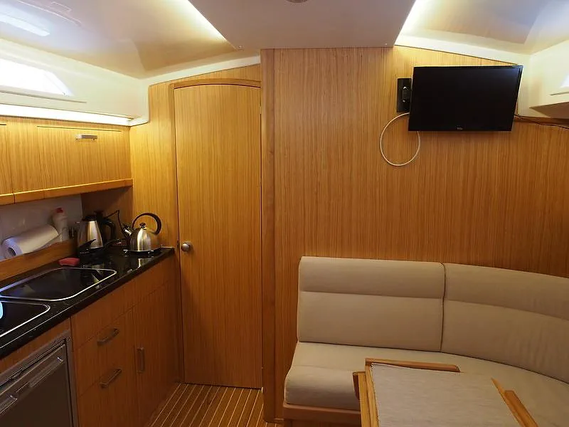 Zdjęcia jachtu poglądowe, jacht w trakcie budowy. Zdjęcia jachtu z tej samej szkutni, zabudowa jak na przedstawionych zdjęciach, mogą wystąpić drobne różnice w zabudowie, kolorze drewna, tapicerki.