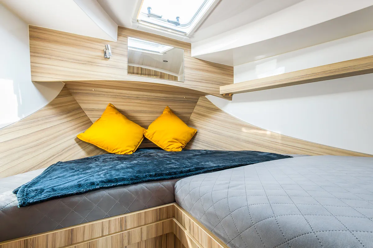Szersze półpokłady umożliwiają swobodne przemieszczanie się między kokpitem a dziobem jachtu.