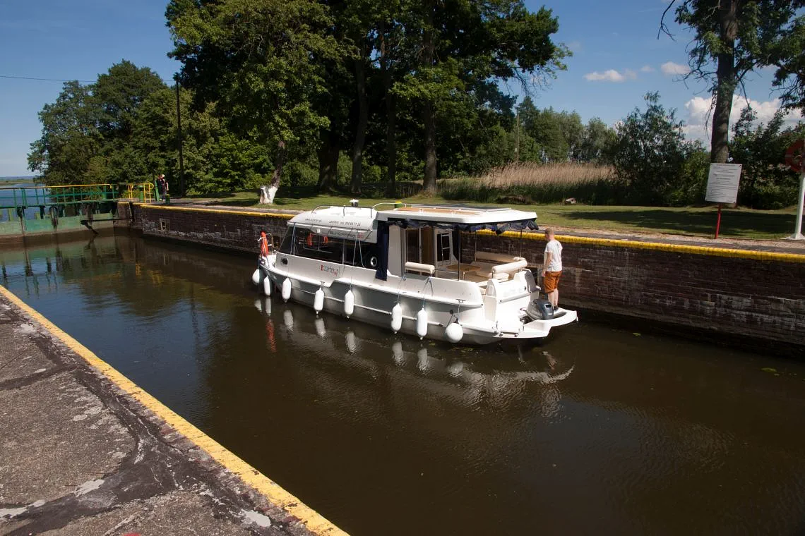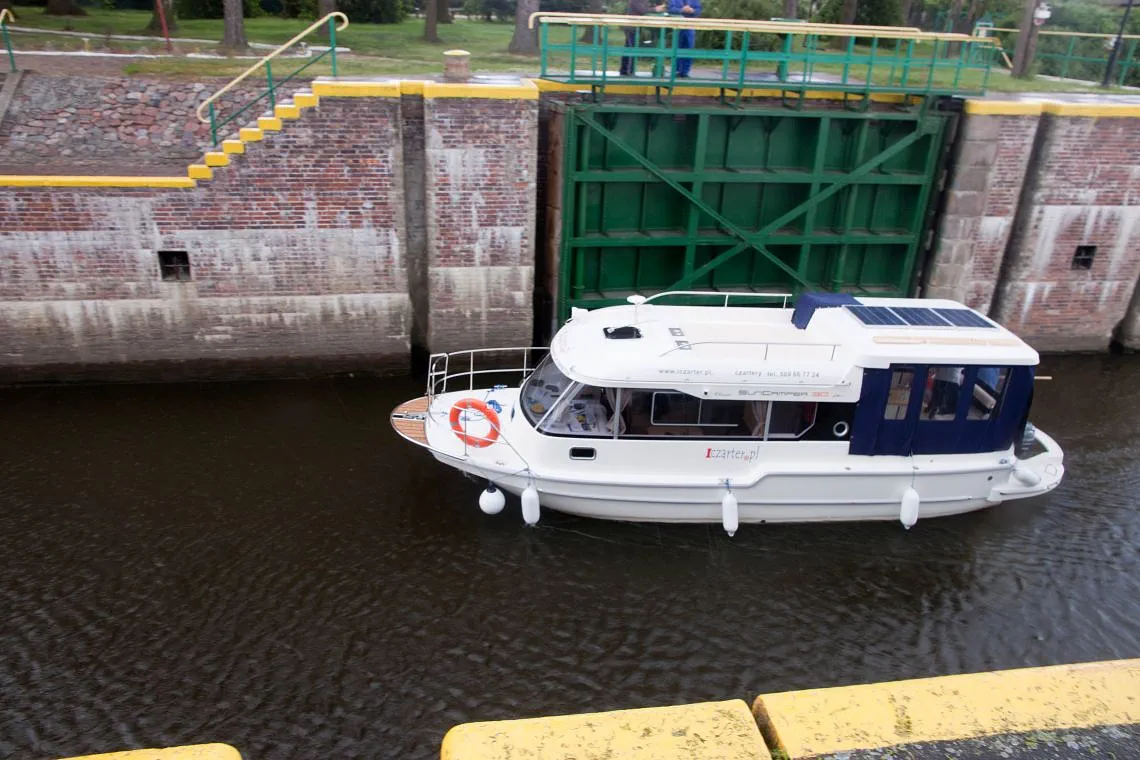 Jego płaskodenny kadłub z trzema wzdłużnymi kilami chroniącymi dno umożliwia bezproblemowe ustawienie jednostki na pochylniach Kanału Elbląskiego, a jego niewielkie zanurzenie na dziobie umożliwia wpływanie na piaszczyste brzegi. Te wszystkie walory barki Suncamper 30 powodują iż jest to świetny wybór do czarteru na Kanale Elbląskim.