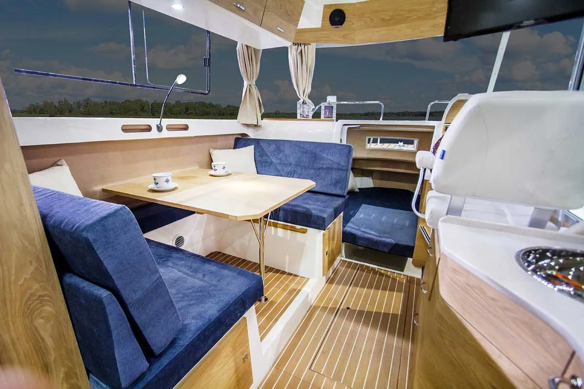Jest to bardzo komfortowy, bezpieczny i luksusowo wyposażony jacht motorowy. Jego największą zaletą jest całkowicie przeszklona mesa pozwalająca załodze na nieustanne podziwianie widoków z rejsu, a także podkład słoneczny na dachu gdzie praktycznie nie słychać silnika i można w ciszy podziwiać żuławską przyrodę.