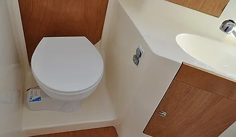 - instalacja wody zaburtowej z elektryczną pompą ciśnieniową, wylewką w kambuzie + natrysk w kokpicie